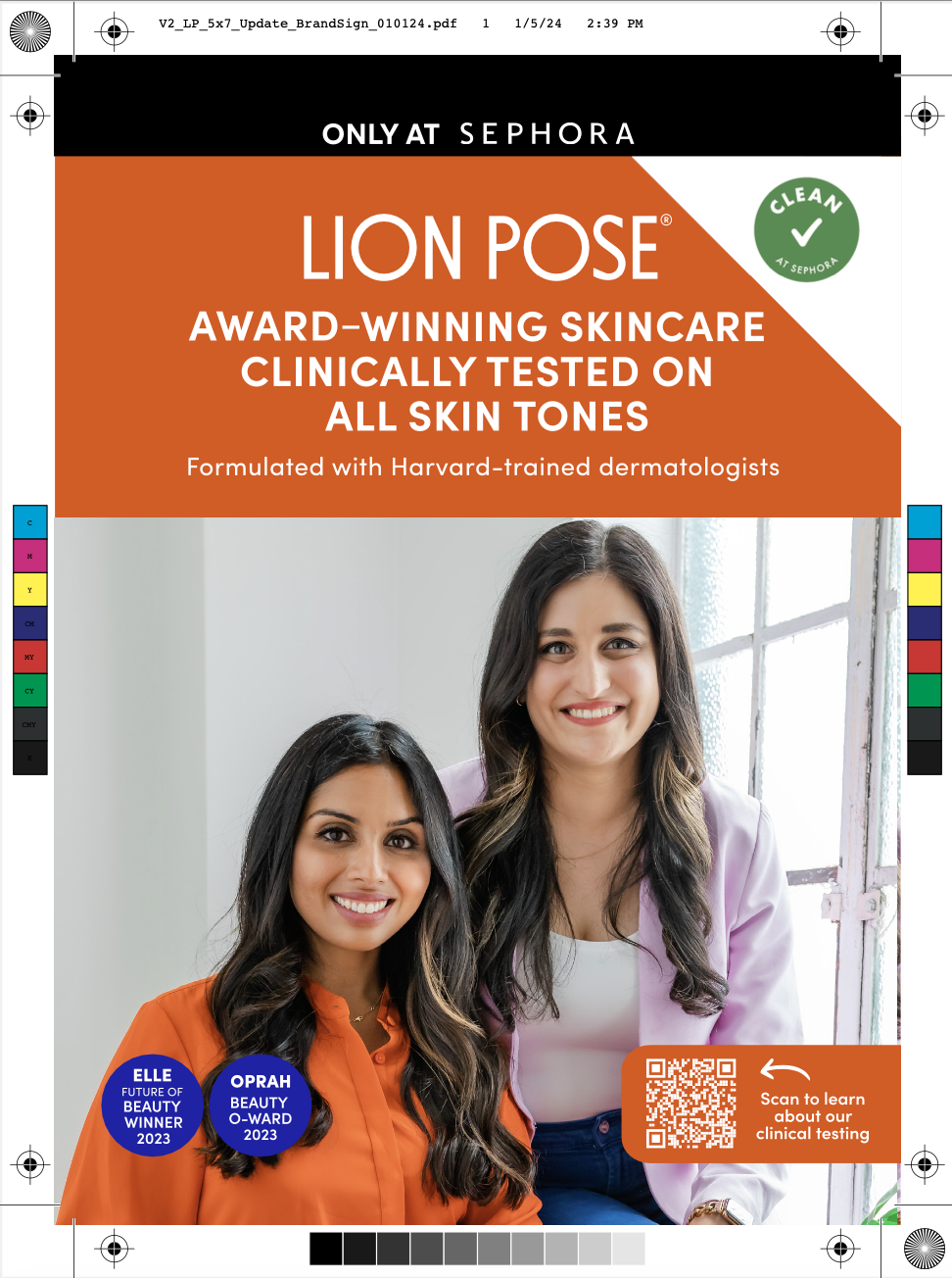Lion Pose is setting the tone for clinical skincare. There are no requirements for skin tone representation in clinical trials - that’s why most products don’t work. We are raising skincare standards by testing on diverse skin tones and types, to create more effective products for more people, inspiring each of us to be proud of our skin. Leading the marketing strategy and execution for brand launch exclusively at Sephora.